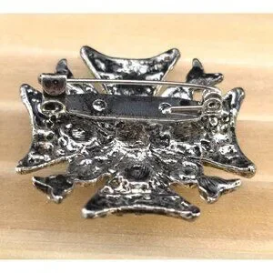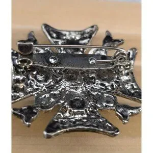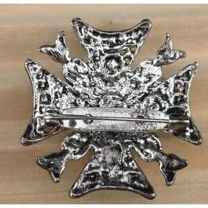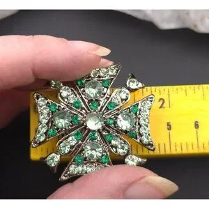 This vintage brooch, designed with sparkling green rhinestones, showcases a timeless cross motif. Ideal for accessorizing formal or casual outfits.