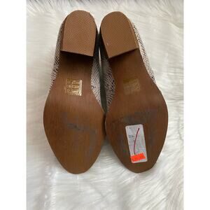 New without box, has a little wear on bottom from trying on in the store. Heels are about 3”.