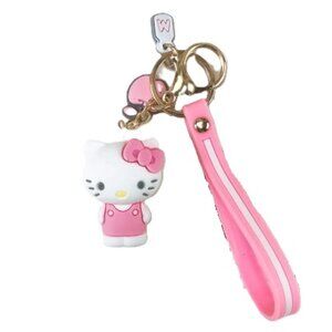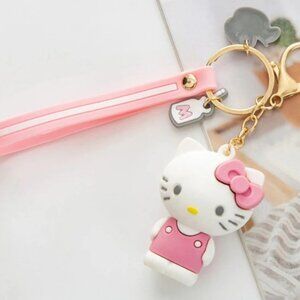 Hello Kitty 3D Figure Keychain with Pink Wrist Strap