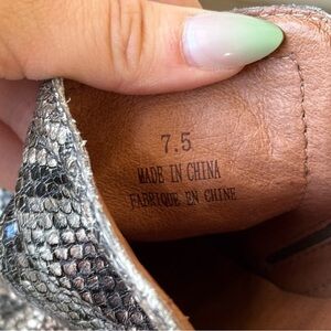 Round toe. Slip-on style. Back pull-tab. Approx. 3.5" shaft height. Approx. 2.75" heel. Size 7.5. In good preloved condition. Some wear shown in last photo