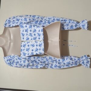 Goodnight Macaroon Floral White And Blue Long Sleeve Crop Top Size Small