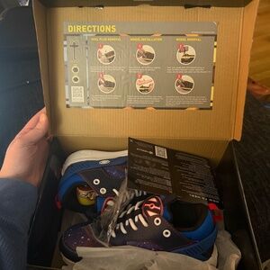 Comes with original box, wheels installed, heel plugs, and tool. Very clean with minimal signs of wear.