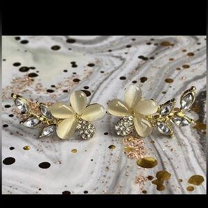 Crystal Rhinestone Yellow Flower Leaf Women's Stud Earrings Brand New