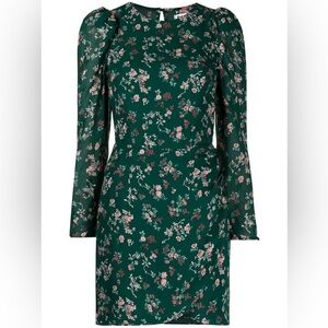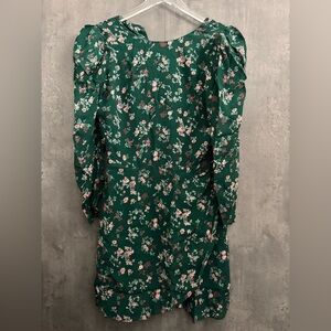 Reformation Juni Green Gathered Floral Print Crepe Mini Dress Size 10 B723