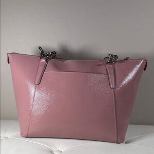 Elegant Coach tote in blush pink leather. Spacious and stylish. Ideal for everyday use.