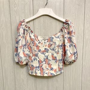 Abercrombie & Fitch Blue Pink Crop Blouse Top Small