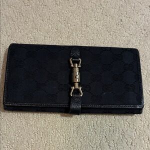 Gucci Black GG Canvas and Leather Jackie Long Wallet 👝