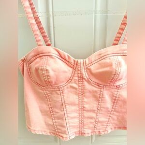 cutie little pink thin strapped top. it is cropped + fits more like a medium (smaller boobies, mine couldn't fit π) it's very comfortable + stylish :)