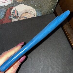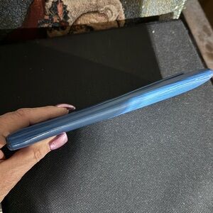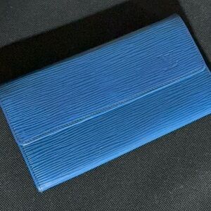 Chic Louis Vuitton clutch in vibrant blue. Features signature textured finish.