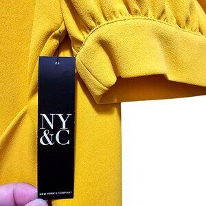 NY&C Womens Mustard Yellow Keyhole Neck Puff Sleeve Belted Midi Dress Size XXXL