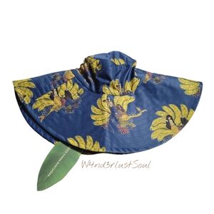 Farm Rio Blue Mermaid Bananas Bucket Hat Self-Tie Straps NWT