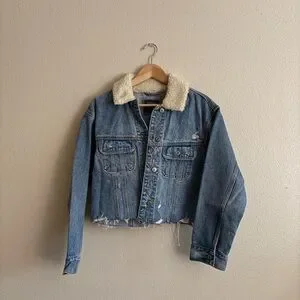 Classic blue denim cropped jacket with a soft cream sherpa collar. Ideal for layering. Only worn once. In perfect shape!