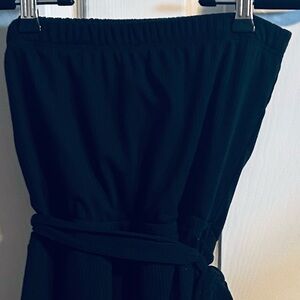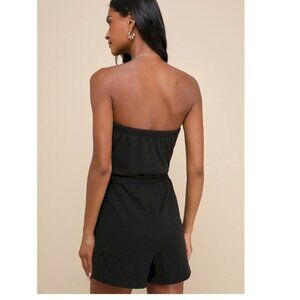 Lulus Leisurely Moments Black Ribbed Knit Strapless Lounge Romper Small NWOT