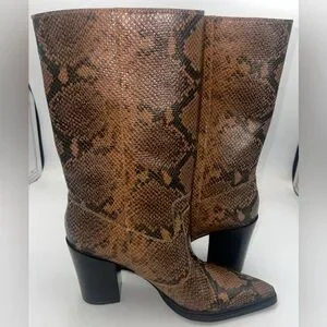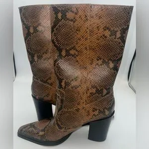 Franco Sarto Womens Jaxon Mid Calf Heeled Boot Snakeskin Embossed Size 8.5M NWB