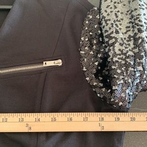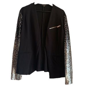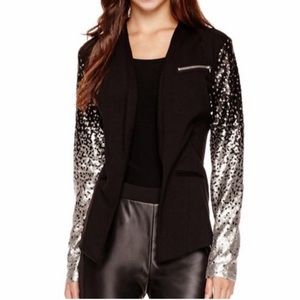 I Heart Ronson NWT Sequin Sleeves Accent Chest Zipper Blazer Black Silver Large Pockets Holiday Business Chic Party Plazacore Soecial Event Birthday Night Out