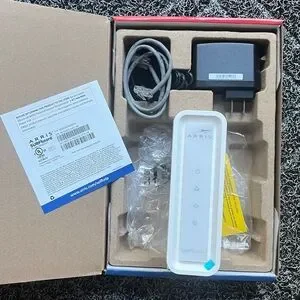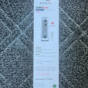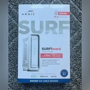 Experience high-speed internet with the ARRIS SURFboard Cable Modem. Perfect for streaming and online gaming, this white modem ensures reliable connectivity.