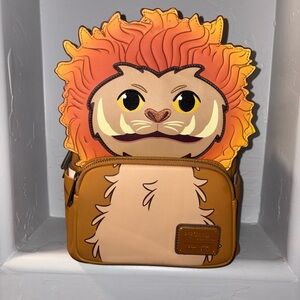 Charming Loungefly backpack with a Fantastic Beasts lion design. Features vibrant light up orange mane and brown body. Perfect for adding a playful touch to any outfit.