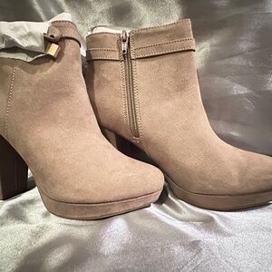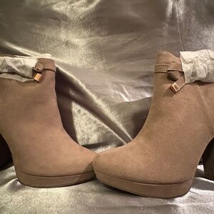 Taupe Suede-like boots, 4 inch heel