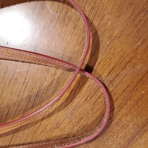 Large chevron stripe tote by Dooney and Bourke. Bag is in very good condition with light wear. Interior has a few pen marks and light spots, but otherwise clean and odor free. Bottom corners and edges have some scuffs, see pics. Approx strap drop 11".