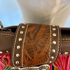 Montana West VTG Look Conceal Carry Handbag Purse Fringe Buckle Stud Chain Leath
