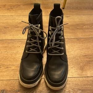 Step out in style with these gently used Sorel Brex lace-up booties! Featuring a waterproof leather upper and a bold, chunky heel and platform, these boots are ready to take on the demands of city living. Enjoy all-day comfort with the removable molded footbed, perfect for your personal preferences.