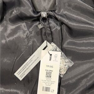 Chic black blazer with a textured finish. Features silver buttons for a modern touch. Ideal for professional or casual wear.