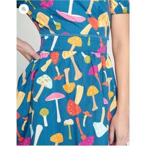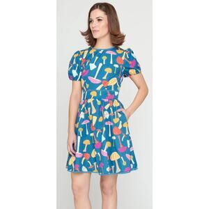 Smak Parlour Unique Vintage Blue Multicolor Mushroom Flare Dress M NWOT