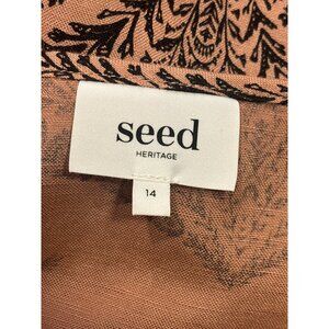 Seed Heritage Linen Blend Botanical Cami Tank Top Brown Sleeveless Size 14