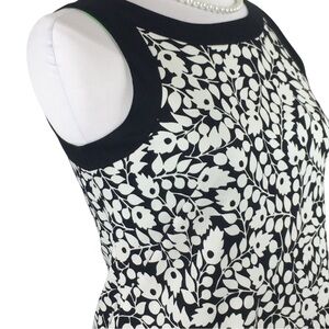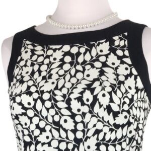 Willow Glenn Black White Floral Boat Neck Sheath Cotton Aline Midi Dress size 6