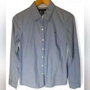 Tommy Hilfiger Classic Chambray Blue 100% Cotton Button Down Size M Office