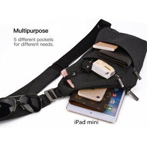 Light Weight - This sling bag adopts sturdy nylon and canvas materials which make it more portable while you go out with it.Large zippered pocket suitable for 8.3 inch mini ipad. Smart phone pocket suitable for 6.7 inch phone.