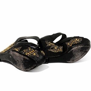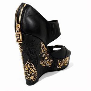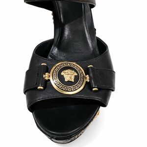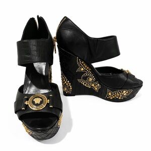 Authentic Versace Black and Gold Wedge Medusa Heels