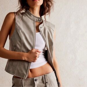 Free People We The Free Sweeney Vegan Vest in women’s size large, new with tags. This stylish vest features a soft vegan leather look with a modern, versatile silhouette that’s easy to layer over tees, sweaters, or dresses. Designed for effortless everyday wear with signature We The Free style. Pit to pit approx. 19.5” and length approx. 23”. Perfect for elevating casual outfits while staying cruelty-free.