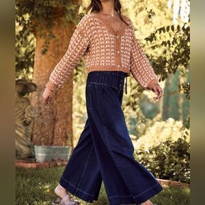Slightly Stretchy Knit Cropped Cardigan for High Waist Jeans