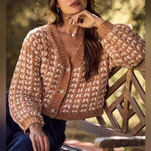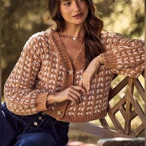SO ME Soft Chenille Crochet Knit Button Down V-Neck Sweater Cardigan