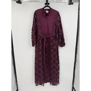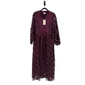 TUCKERNUCK Womens Merlot Lace Calliope Dress Size L Long Balloon Sleeve Boho
