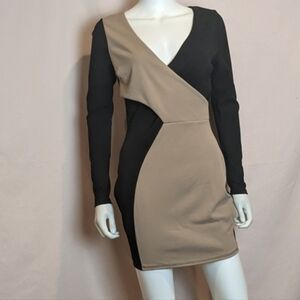 Windsor Tan and Black Color Block Long Sleeve V Neck Mini Dress size Medium