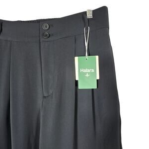 Halara Flex Crepe Pants Womens M Black High Waist Wide Leg Pleated Trousers Work