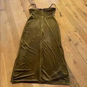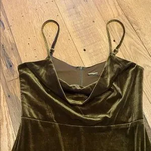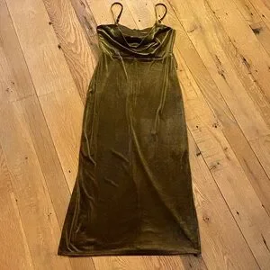 Taylor Velvet Olive Green Spaghetti Strap Side Vents Cowl Drape Front SMALL