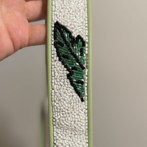Super cute beaded bag - white base with birds of paradise flowers and palm leaves motif