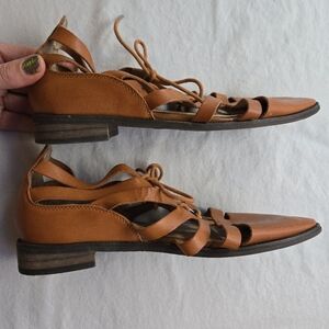 Forever 21 Brown Pointed Toe Lace Up Cage Sandals 7.5