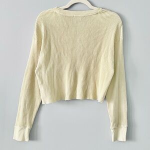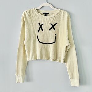 Forever 21 Smiley Face Graphic Cropped Waffle Knit Top | Cream | Size M