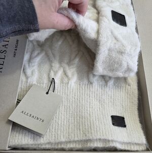 ALLSAINTS Wool Blended Cable Beanie & Scarf Gift Box