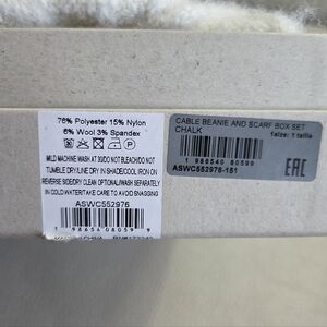 Type: Unisex Beanie & Scarf Gift Box, Cable Knit, Rolled Up Cuff for Beanie, Ribbed Hem for Scarf, Leather Logo Patch, Model wears similar style in Gray only for your reference