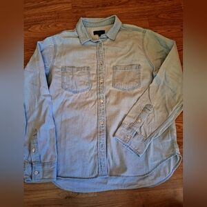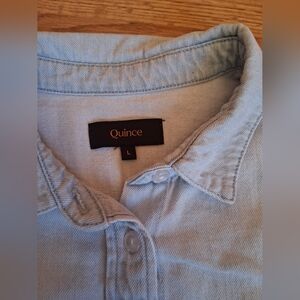 Quince brand ladies light blue denim button up shirt. 2 chest pockets. this is an awesome shirt. very well made. get this quick!