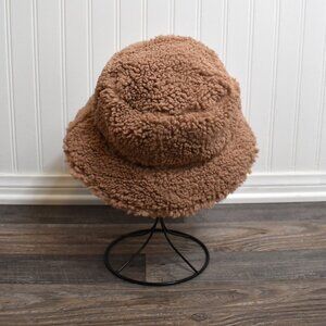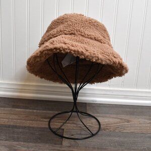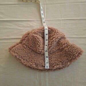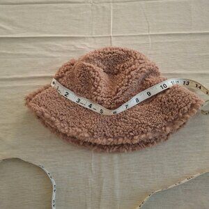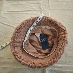 Brand new with tags. Neutral shade of beige. Sherpa fabric. Brimmed. Lined. Cute and soft! Size per tag: One Size. Fabric: 100% Polyester. Size per tag does not guarantee desired fit, please see pictures for measurements.