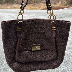 Coach Dark Brown Woven Shoulder Bag