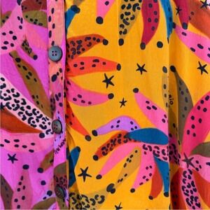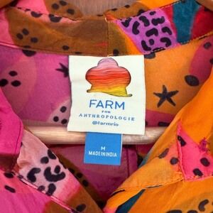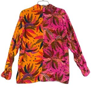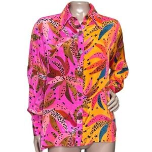 FARM RIO Tropical Banana Logo Button Up Shirt Women Medium Long Sleeves Dopamine