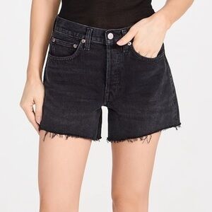 Agolde Dee Vintage High Rise Short in divise, washed black color! Excellent condition, raw hem and fraying is part of the design!