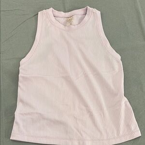 Stylish pink ribbed tank top. Paired with floral print leggings. Perfect for casual wear. Leggings are size S but fit smaller